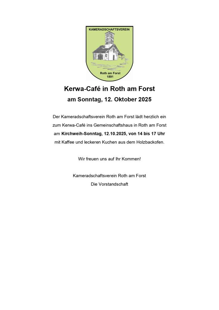 Der Kameradschaftsverein Roth am Forst lädt herzlich ein.