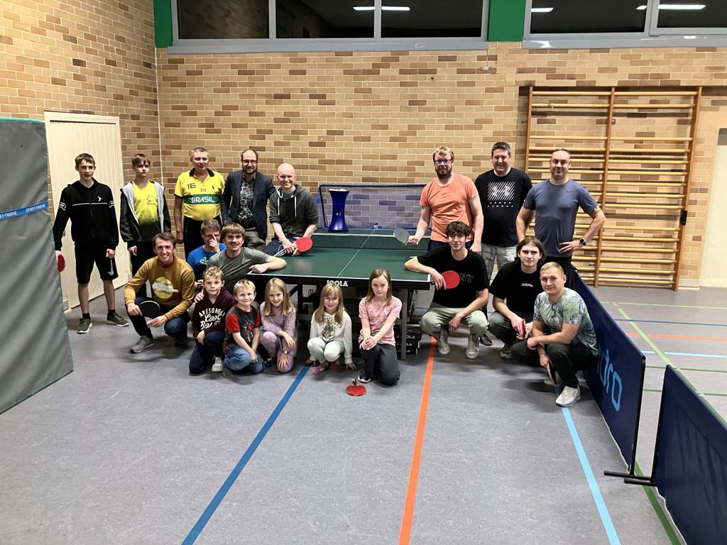 Die Tischtennisabteilung der TSG Niederfüllbach hat eine Zuwendung von 700 Euro aus der Integrationspauschale des LRA Coburg erhalten! Regelmäßig kommen zum Tischtennis-Training auch Geflüchtete und können so mit Einheimischen in Kontakt kommen. Die fleißigen Bemühungen der Tischtennisabteilung um die Integrationsarbeit im Ort werden belohnt und es konnte eine neue Platte, eine Ballwurfmaschine, Umrandungen und Trainingsbälle angeschafft werden. Bei einer gemeinsamen Trainingseinheit mit ukrainischen Geflüchteten wurde den AL-Leitern Oliver Ultsch und Alexander Stahn die Utensilien übergeben.